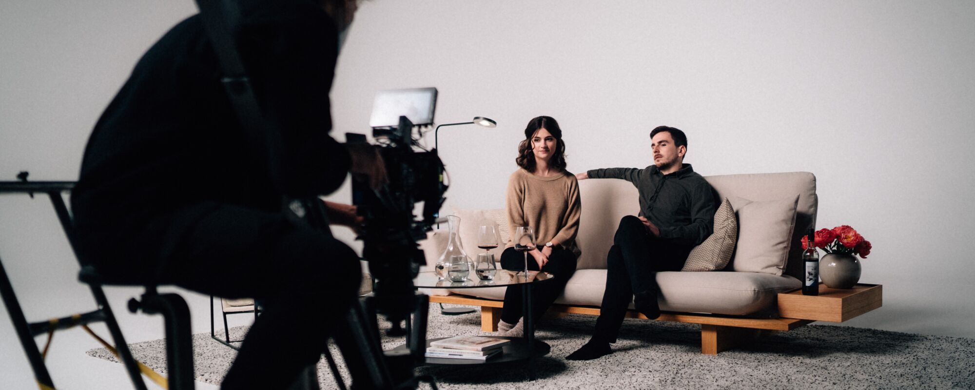Zwei anstrengende, aber auch super spannende und erfüllende Tage lagen hinter uns. Doch an Beine hochlegen auf dem Sofa ;-) war nicht zu denken. Denn nach der Produktion ist bekanntlich vor der Post-Production. Und so haben wir uns direkt an die Arbeit gemacht, unser Werk weiter zu veredeln bzw. veredeln zu lassen: Nach ausführlicher Sichtung aller Takes haben wir zunächst einen Rohschnitt mit den besten Szenen erstellt. Anschließend ging's ans Colorgrading - also die digitale Feinbearbeitung aller Farben, Bildkontraste etc. Anspruchsvoll, aber zum Glück ureigenes Terrain für eine design-orientierte Werbeagentur wie uns! Zusammen mit den Technik-Cracks aus dem Tonstudio haben wir zudem die Live-Sounds vom Set (also z. B. das Geräusch, wenn unser Filmpärchen ein Rotweinglas über dem Sofa auskippt oder wenn Filmhund Theo beim Fressen vor sich hin schlabbert!) nochmal nachvertont. Und nach vielen Arbeitsstunden steht am Ende ein fertiger Imagefilm für Active Line – in 4K-Auflösung, mit Overdubs in vers. Sprachen für den internationalen Markt und Schnittfassungen u.a. für Social Media und die Website von Höpke Textiles.