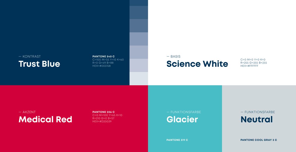Für einen optimalen crossmedialen Einsatz haben wir das Logo in verschiedenen Ausführungen und Kontrasten entwickelt. Dadurch kann es flexibel an unterschiedlichste Anwendungen angepasst werden, ohne seine Wirkung oder Wiedererkennbarkeit zu verlieren. Dabei legen wir großen Wert darauf, dass die Gestaltung stets klar und konsistent bleibt. Die CD-Farbe «Medical Red» spielt eine zentrale Rolle und wird entweder als Füllfarbe oder als Unterlegung genutzt, um die visuelle Identität des Logos zu stärken. Andere Farbkombinationen wurden bewusst vermieden, um die Markenidentität nicht zu verwässern.