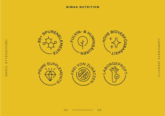 Unsere selbstgezeichneten Icons und individuellen Pattern für jedes Produkt sind das Ergebnis unserer kreativen Leidenschaft. Das Schrift- & Farbkonzept, kombiniert mit den dynamischen "nimaa-Swirls", inspiert vom Signet des Unternehmens, bilden die Grundlage der visuellen Markenidentität.