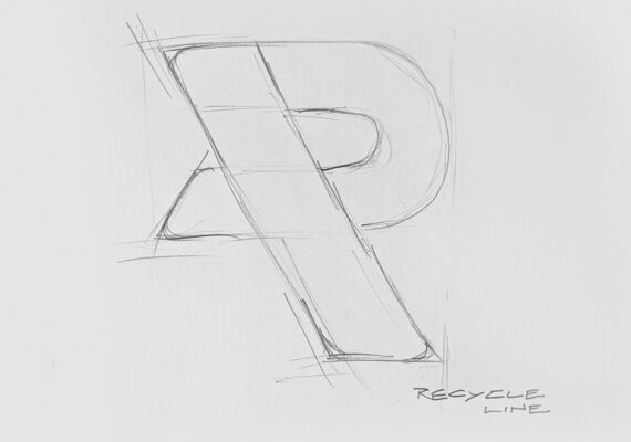 Beim Recycle Line Logotype wird das Kernattribut dieser Kollektion – die recycelte PET-Flasche – direkt in der Bildmarke kommuniziert. Assoziationen zum etablierten Recycling-Logo sind dabei ausdrücklich erwünscht.